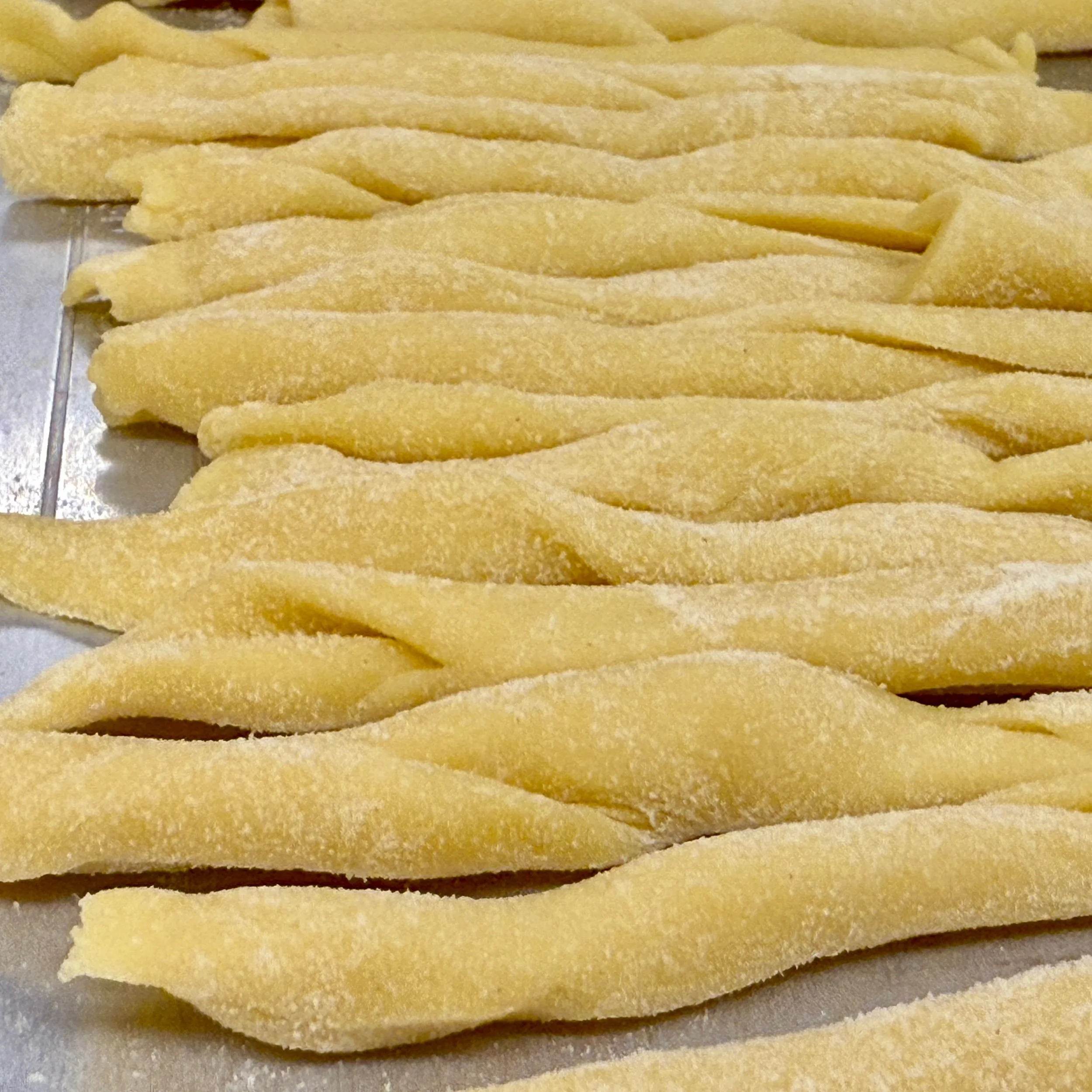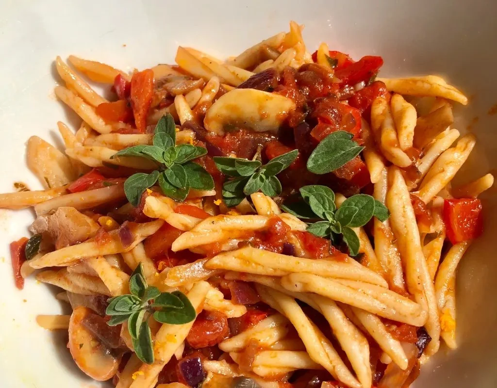 Hand-twisted semolina pasta made with just flour, water, eggs & olive oil.